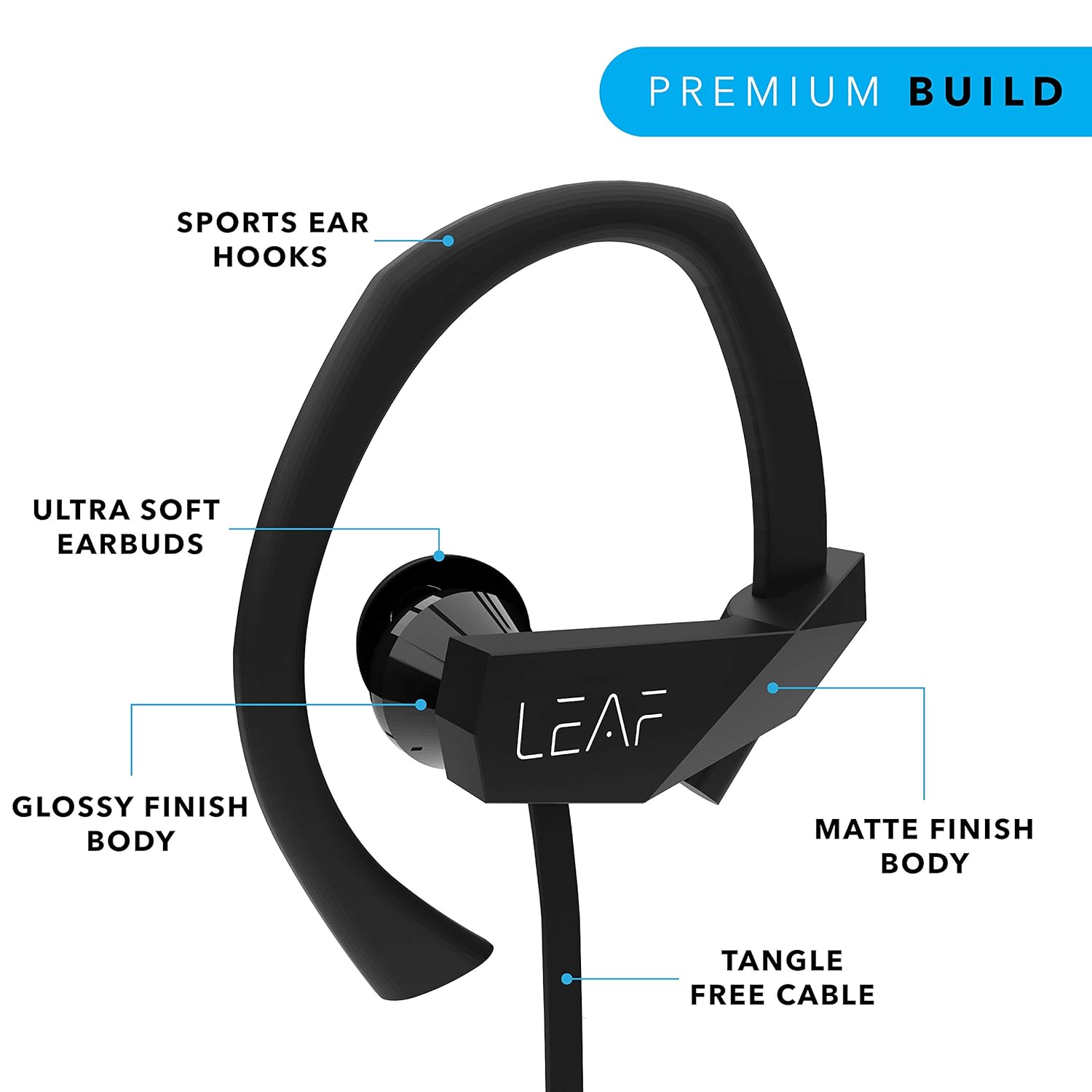 - Ergonomic design and Sport Friendly: Leaf Sport has ABS casing material giving it a durable design and it’s comfortable earbuds ensures that wireless earphones always stays in place while running, and Gyming. Invisible nano-coating technology protects earbuds against sweat during workout and its sports ear hooks will fit perfectly onto your ears preventing it to fall down during any form of workout.